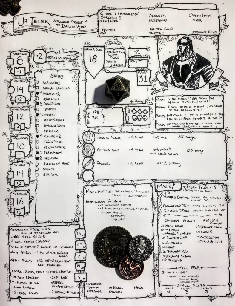 Depicted is a hand-drawn, well-loved character sheet poster by Reddit User Dysonlogos