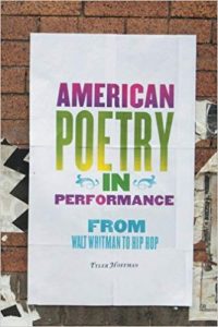 “American Poetry in Performance: From Walt Whitman to Hip Hop is the first book to trace a comprehensive history of performance poetry in America, covering 150 years of literary history from Walt Whitman through the rap-meets-poetry scene. It reveals how the performance of poetry is bound up with the performance of identity and nationality in the modern period and carries its own shifting cultural politics. This book stands at the crossroads of the humanities and the social sciences; it is a book of literary and cultural criticism that deals squarely with issues of “performance,” a concept that has attained great importance in the disciplines of anthropology and sociology and has generated its own distinct field of performance studies” (University of Michigan Press).